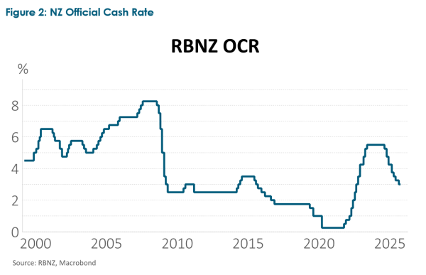 - Market anticipates 75bps of OCR cuts by mid-2026, possibly delivered in upcoming RBNZ Meetings in October and November.