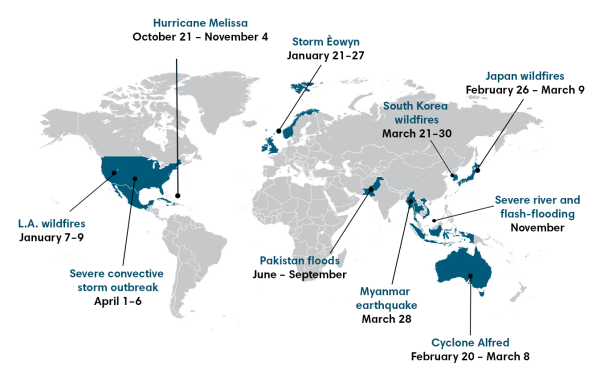 1) 2025 marks sixth year insured natural catastrophe losses exceed USD 100 billion, finds Swiss Re Institute | Swiss Re